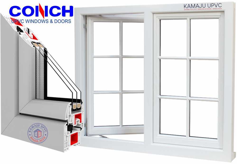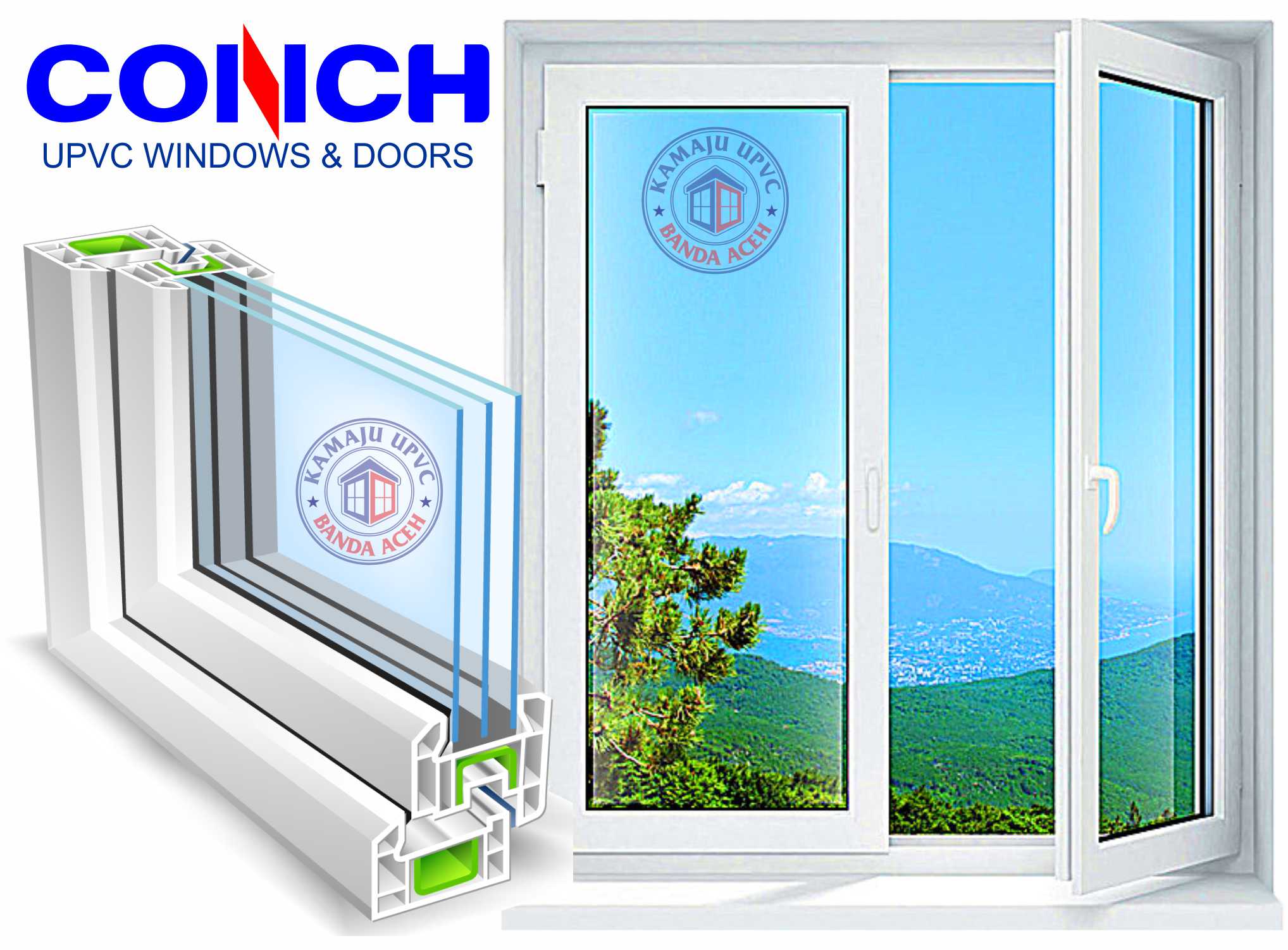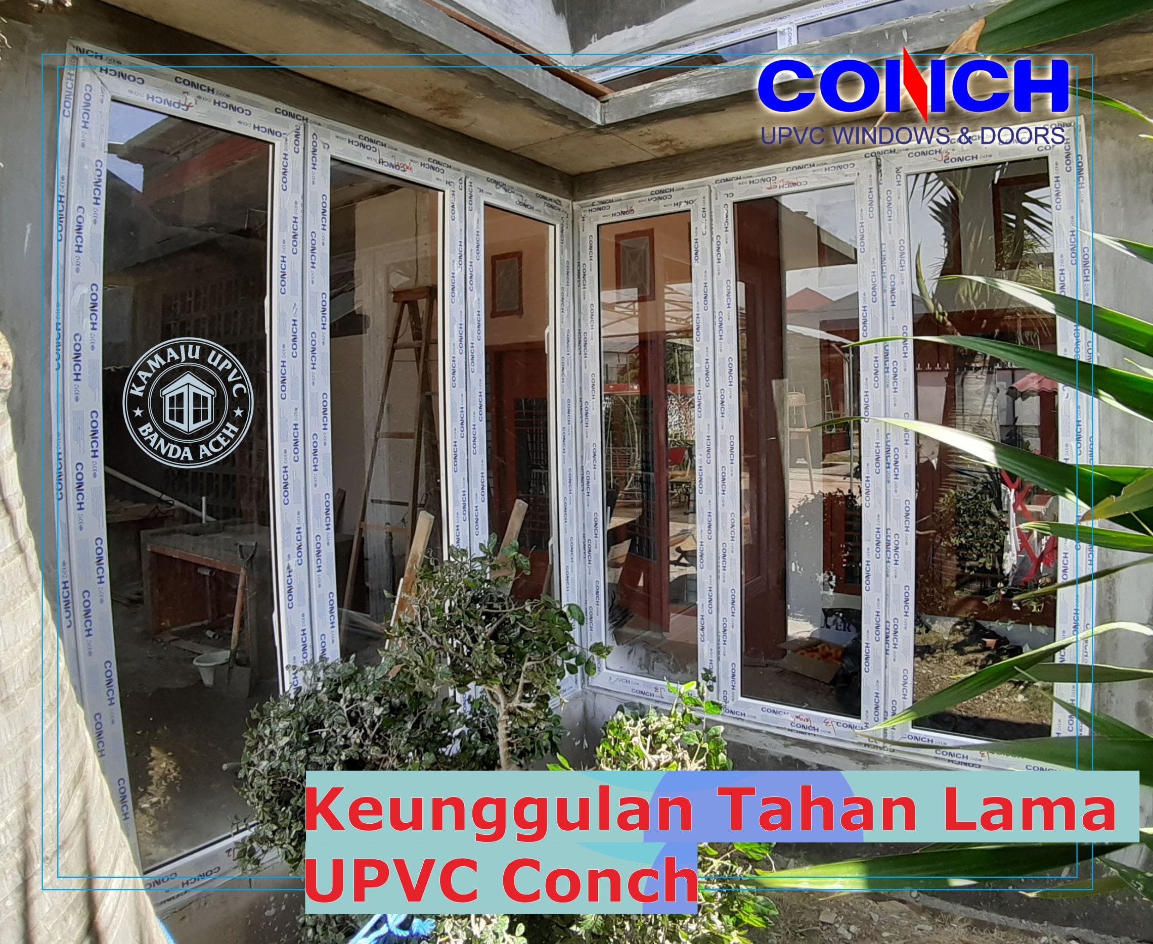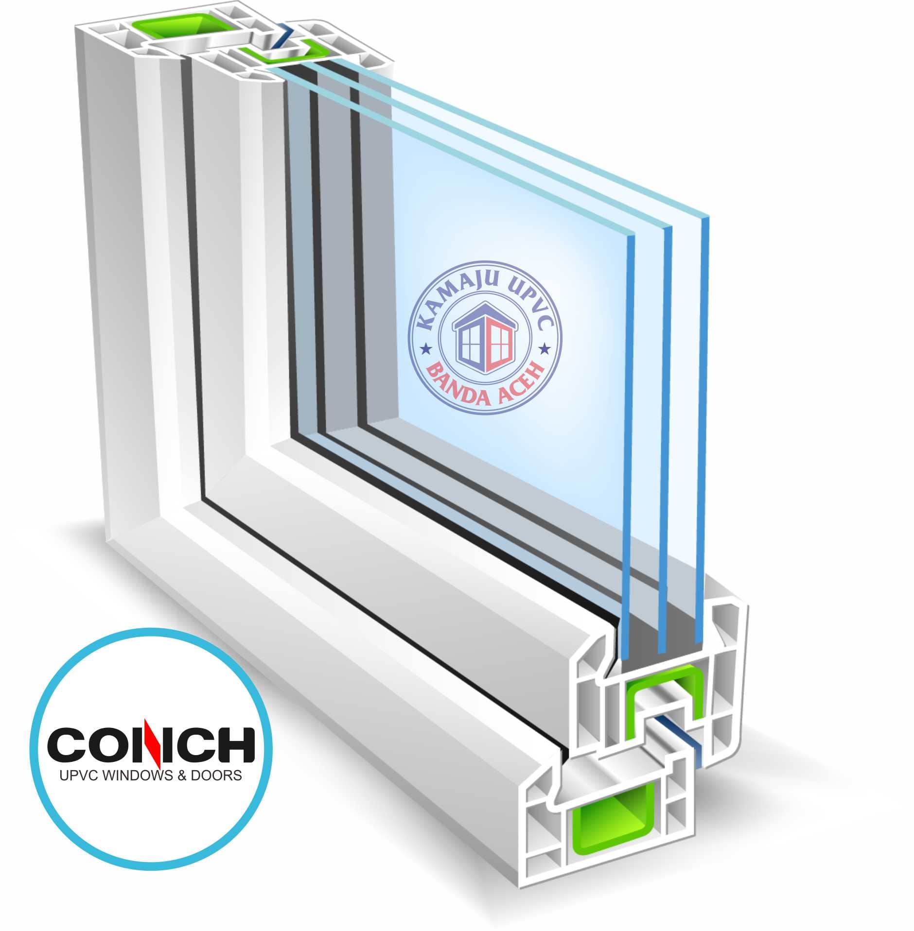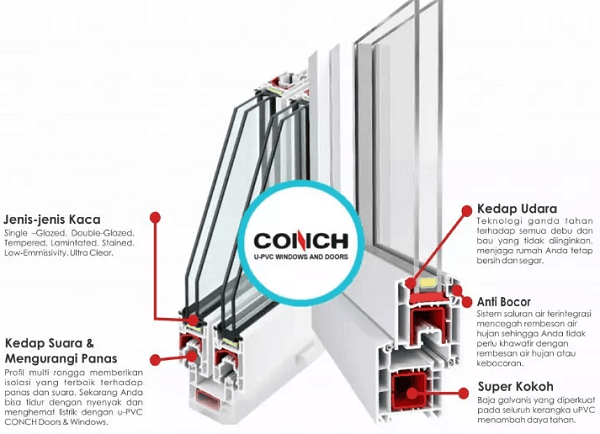 Kami memakai profil terbaik bermerk “CONCH” yang telah di gunakan di negara-negara Eropa lebih dari 30 tahun. Dengan kualitas yang sudah di akui dunia, CONCH adalah merk profil UPVC terbesar di Cina dan telah membuktikan dirinya dengan meraih sertifikat ISO9001 dan ISO14001. Tidak di ragukan lagi.
