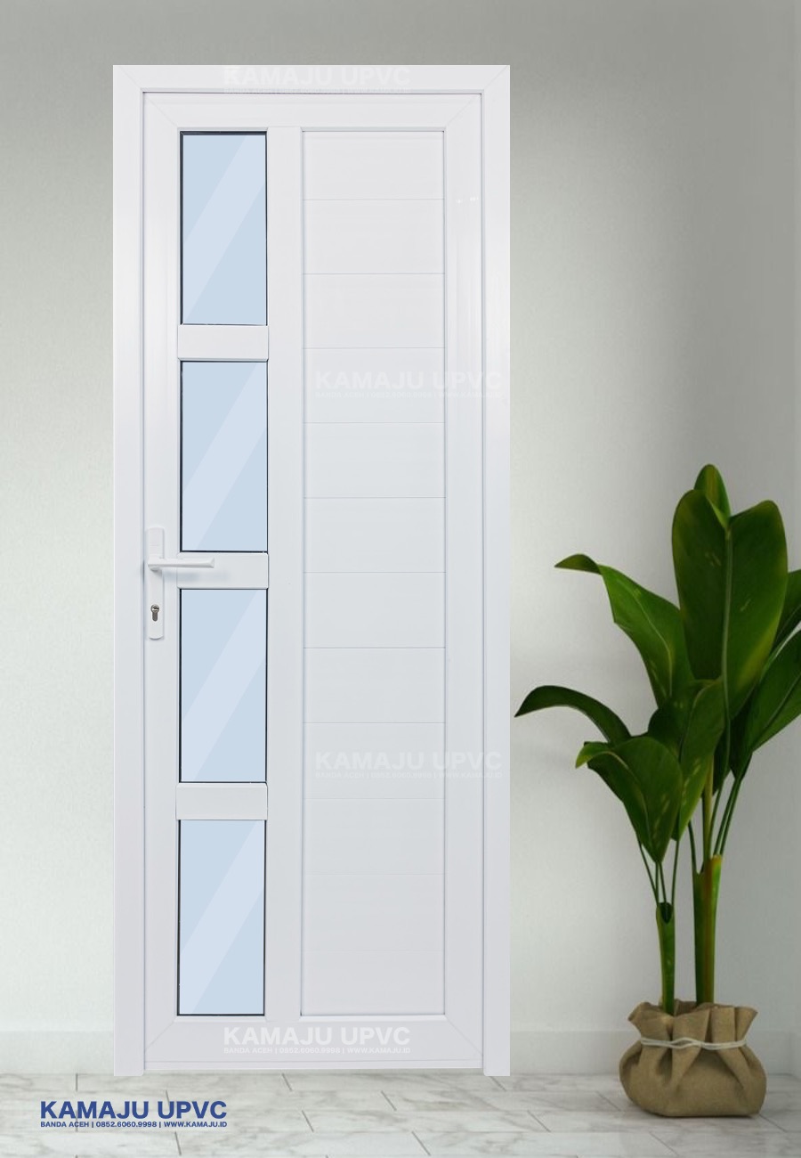 Pintu UPVC terbuat dari material Unplasticized Polyvinyl Chloride yang di kenal kuat, stabil,