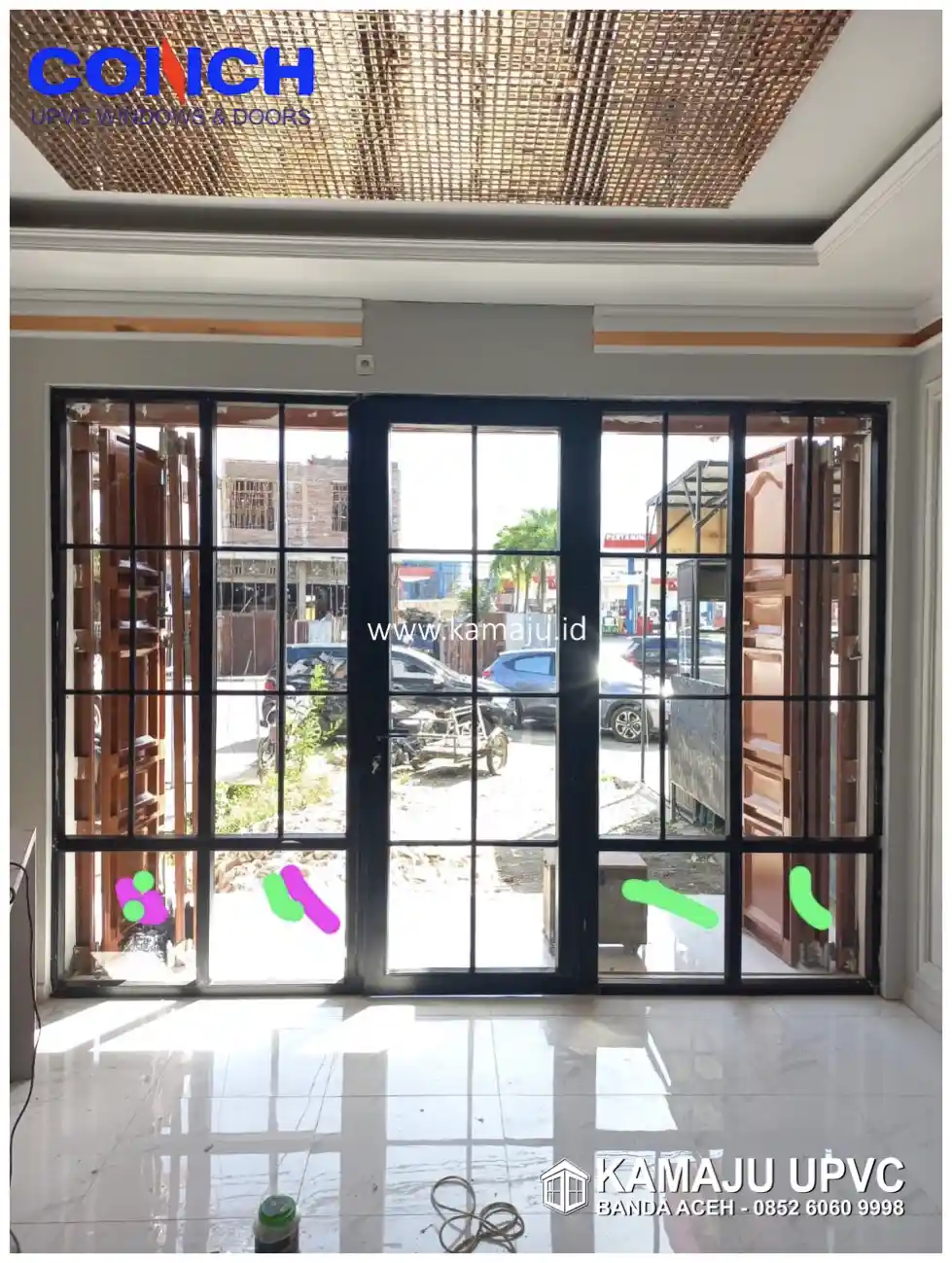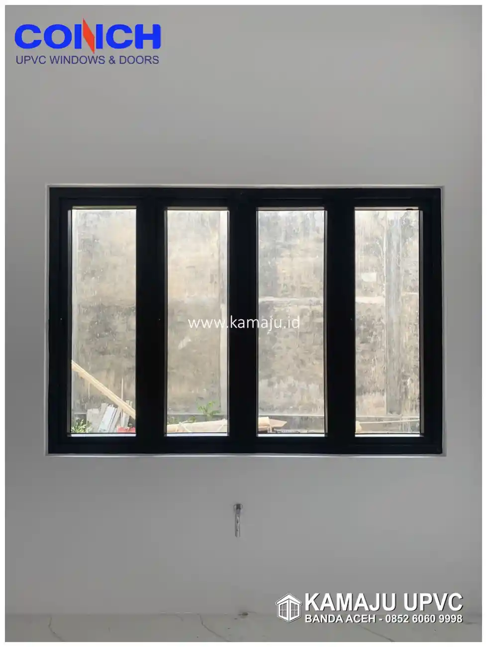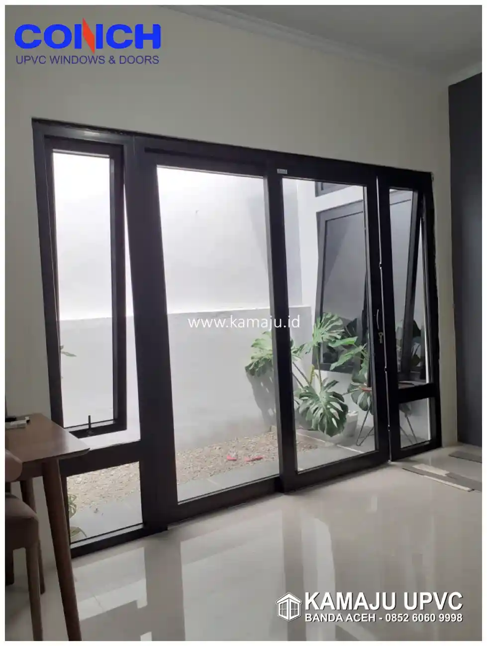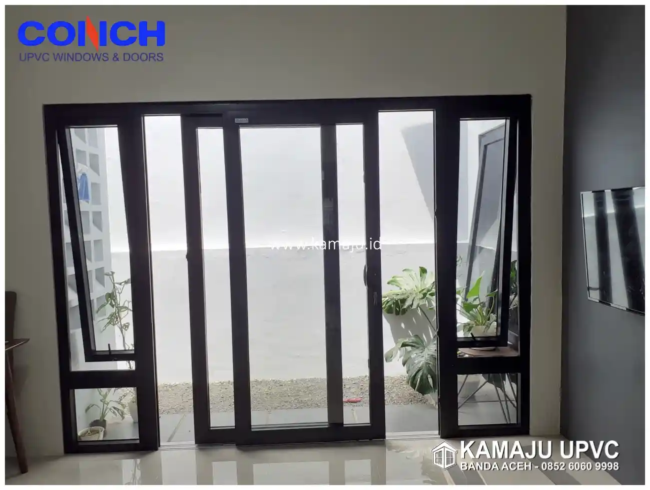 Selain itu, UPVC bisa di kombinasikan dengan berbagai jenis kaca, seperti kaca bening, reflektif, atau buram, sesuai kebutuhan ruangan. Hasilnya bukan hanya indah, tetapi juga fungsional dan tahan lama.