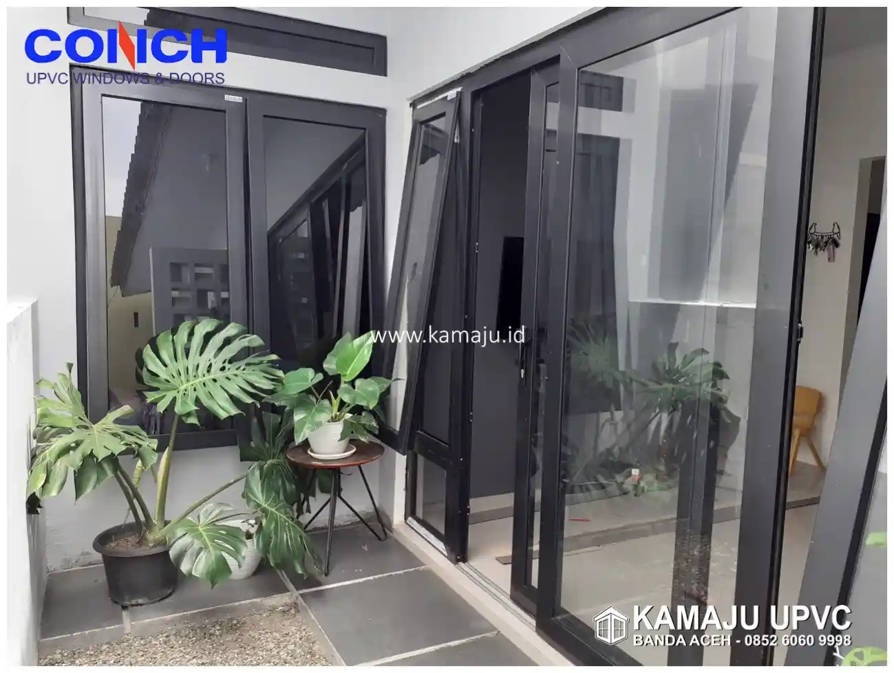 Selain itu, UPVC juga memiliki sifat kedap udara dan suara, membuat rumah lebih sejuk dan tenang. Itulah sebabnya material ini banyak dipakai untuk rumah pribadi, kantor, hingga bangunan komersial di Banda Aceh.